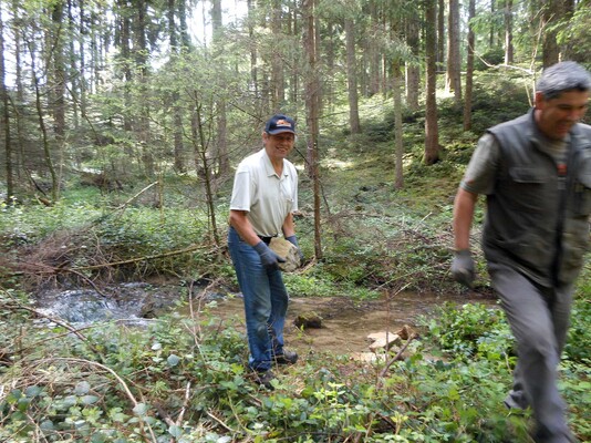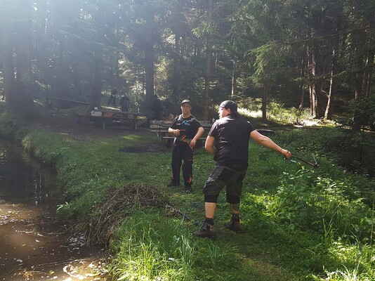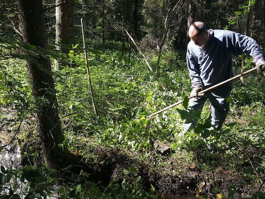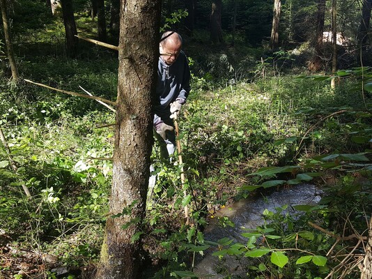 Team „Agrar“ befreite, mit teilweise großen Anstrengungen, Äste und Gestrüpp aus beiden Bachläufen, damit diese wieder frei fließen können. Gleichzeitig wurden vorsorglich, jeweils am Rand der Bachläufe, Pflanzen entfernt, die die Bäche zum Stauen bringen könnten.