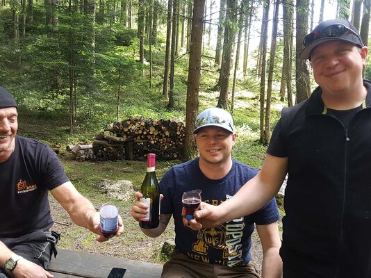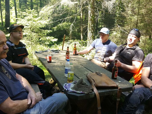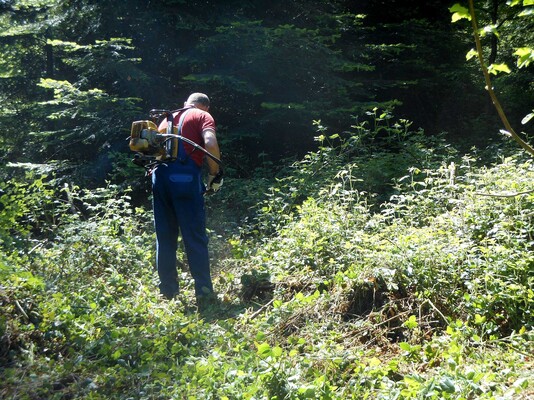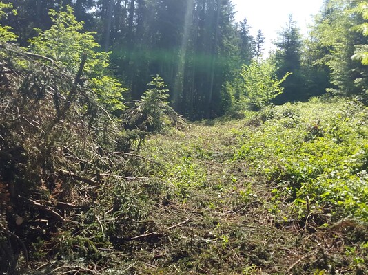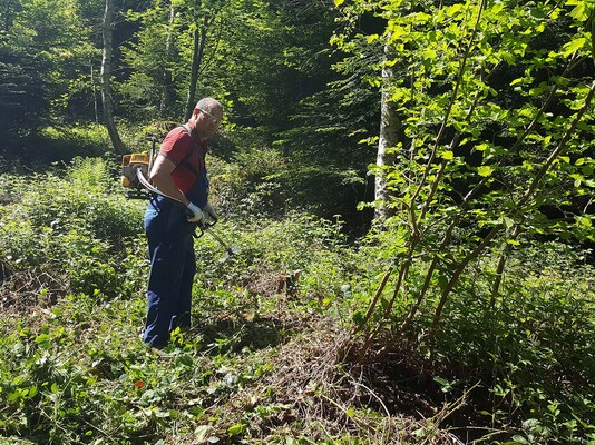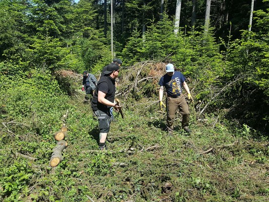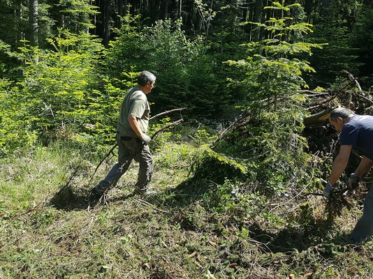 Am Schluss sammelten sich nochmals beide Teams und alle 11 Helfer befreiten gemeinsam eine Lichtung vom Unterholz, damit der Jungwald wieder Platz zum Wachsen hat.