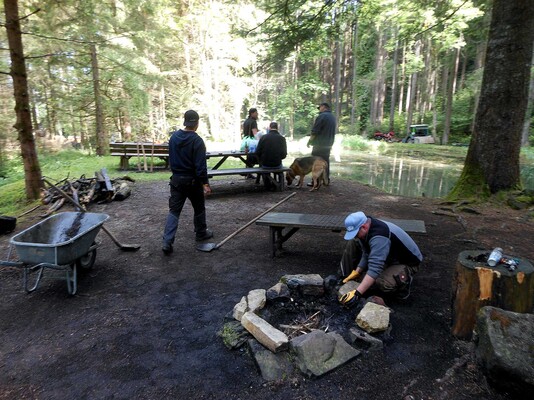 Zum Ausklang grillten alle an der neu gerichteten Feuerstelle und quatschten noch ausgiebig. Alles in allem ein gelungener und sehr lustiger Einsatz.