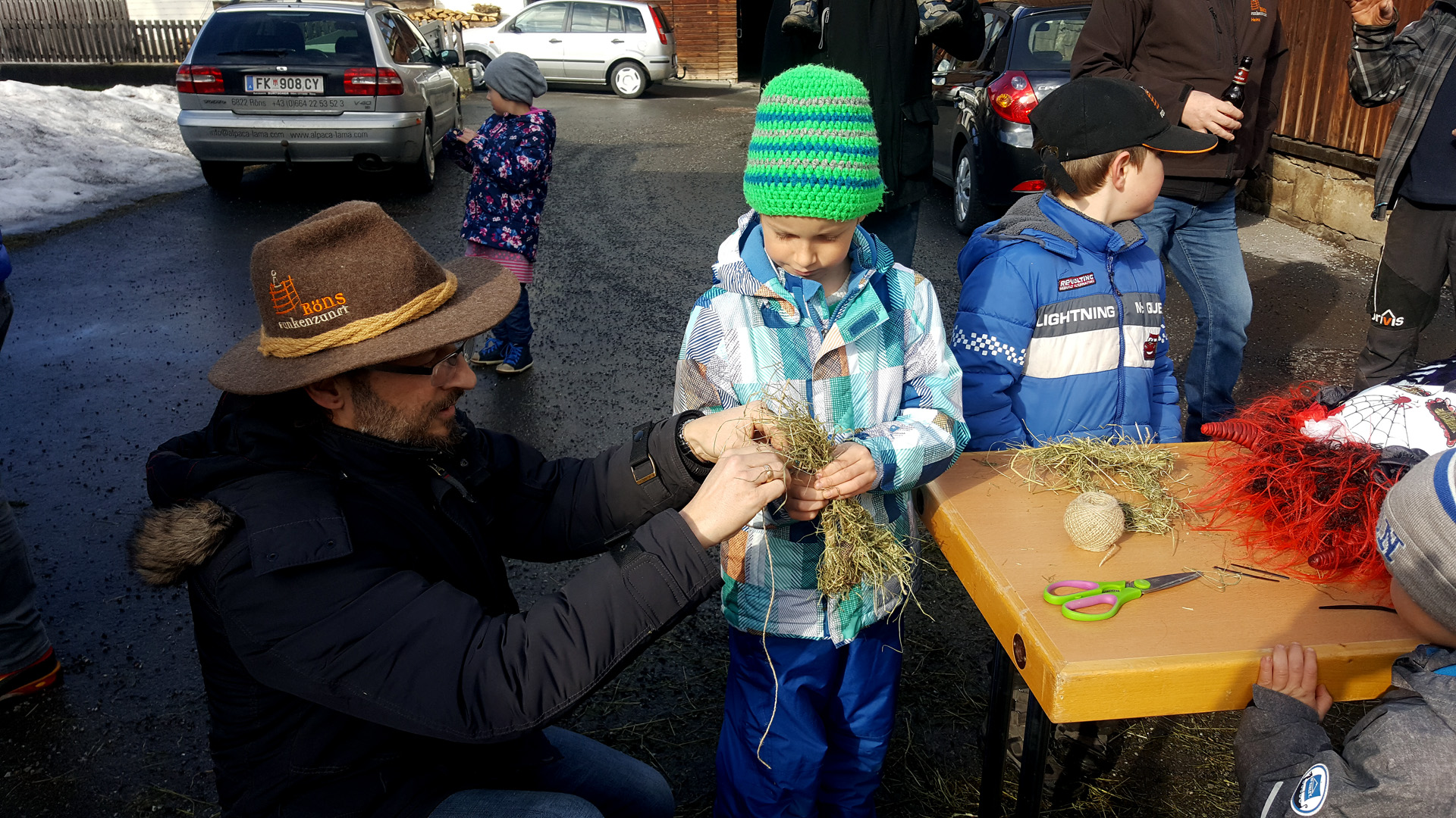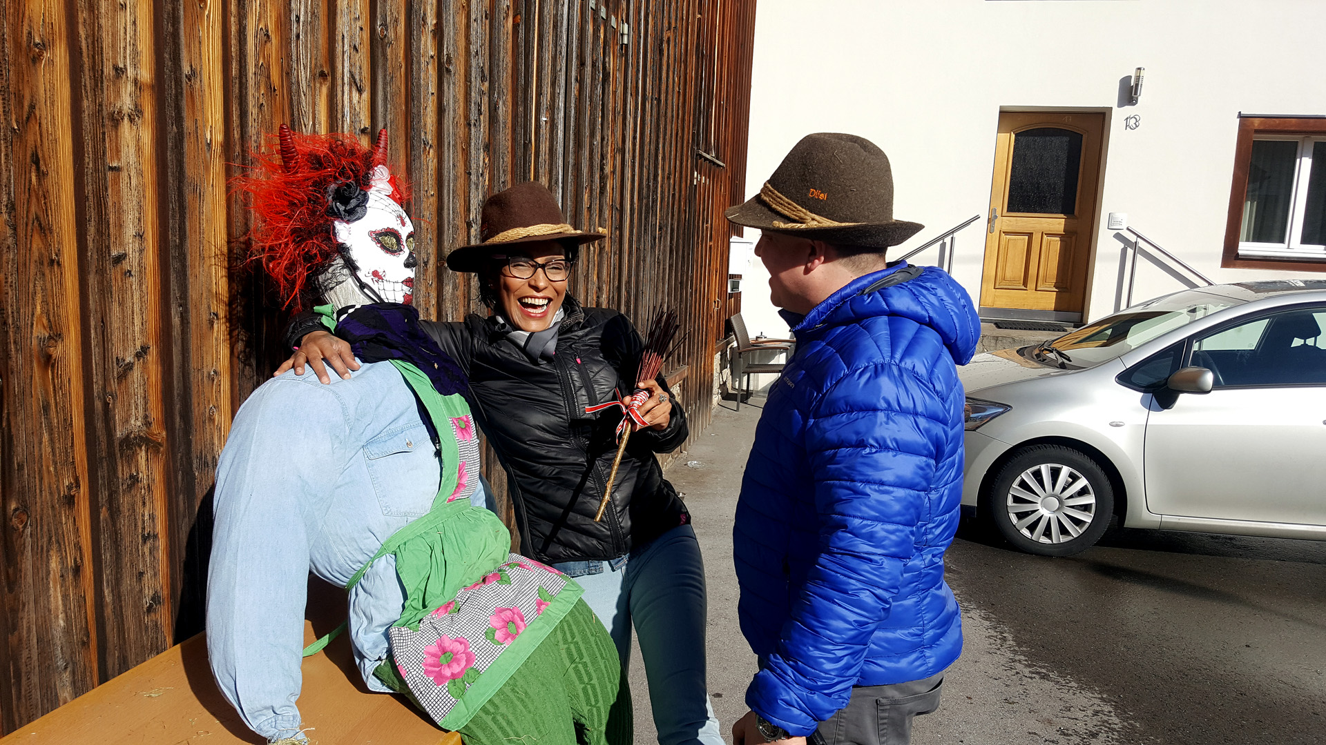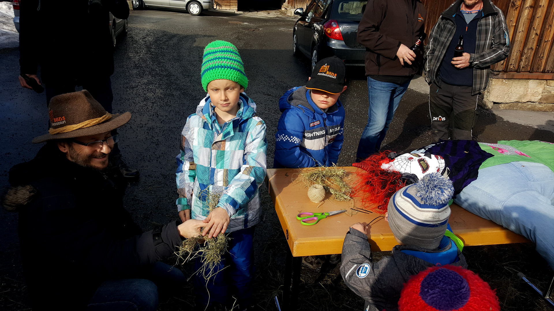 Anschließend baute Bernhard Dünser, unser Hexenbau-Experte, zusammen mit den Rönser Kindern und Javier Quinones die Hexe 2017. Die Hexe erhielt neben High-Heels, einer venzianischen Maske, einem Halstuch schöne Strohfinger. Schließlich nimmt unsere Hexe wie jedes Jahr die Sorgen der Kinder & Erwachsenen mit zum Funken. Unsere Hexe war somit von Kopf bis Fuß gestylt und für den "Catwalk to Hell" bereit.