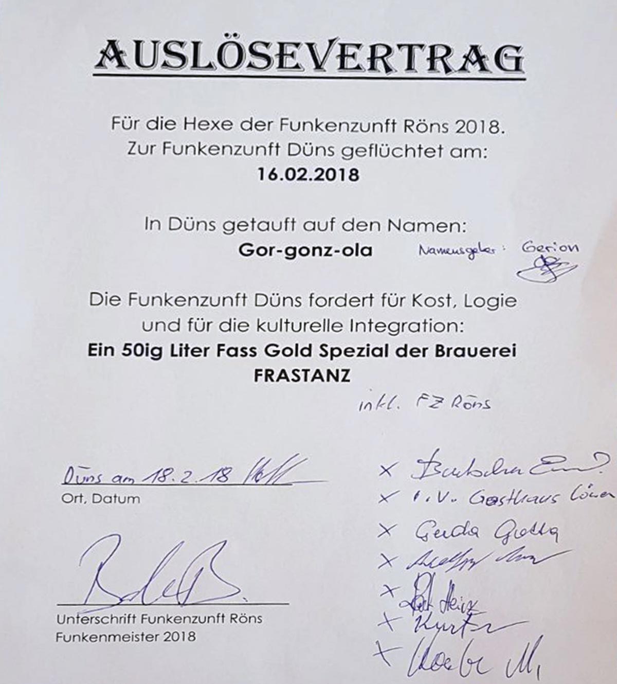 " Vielen Dank an die Dünser Funkenzunft für das "Klauen" unser Funkenhexe Kunigunde"Aussage: Erwin Burtscher