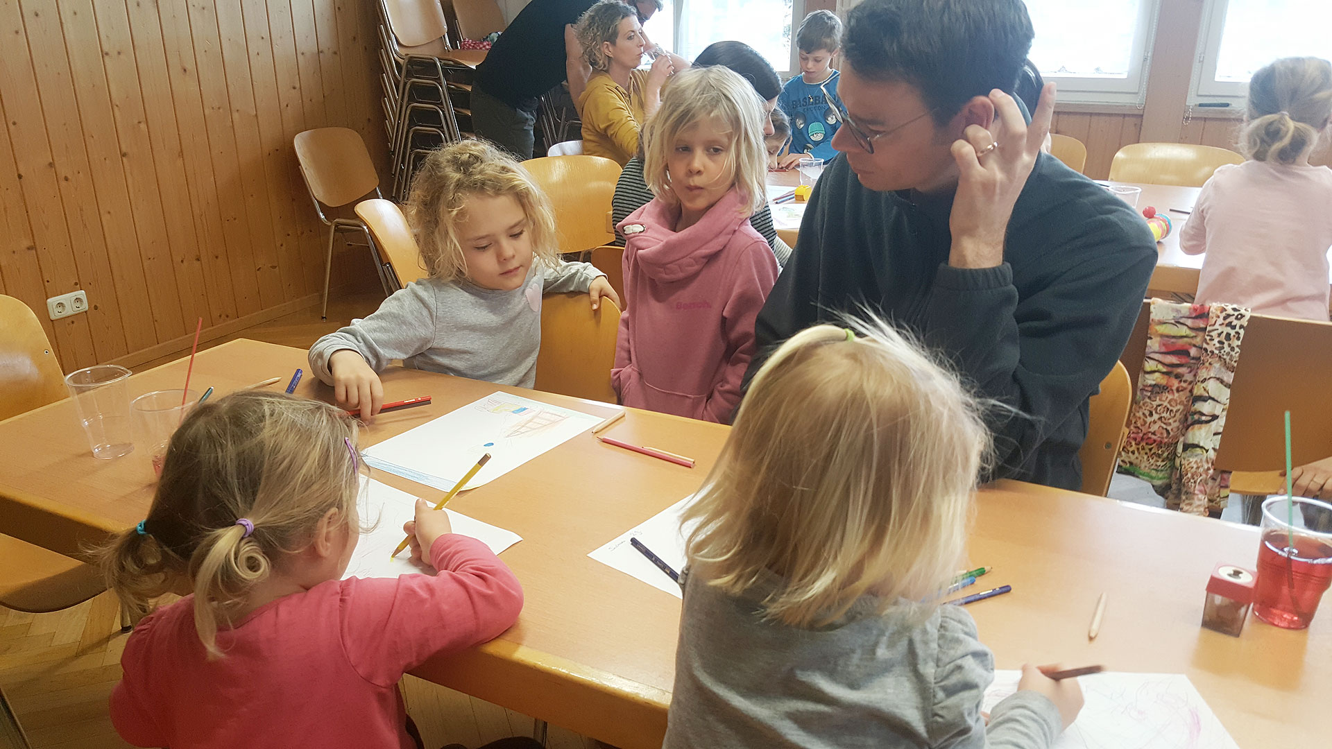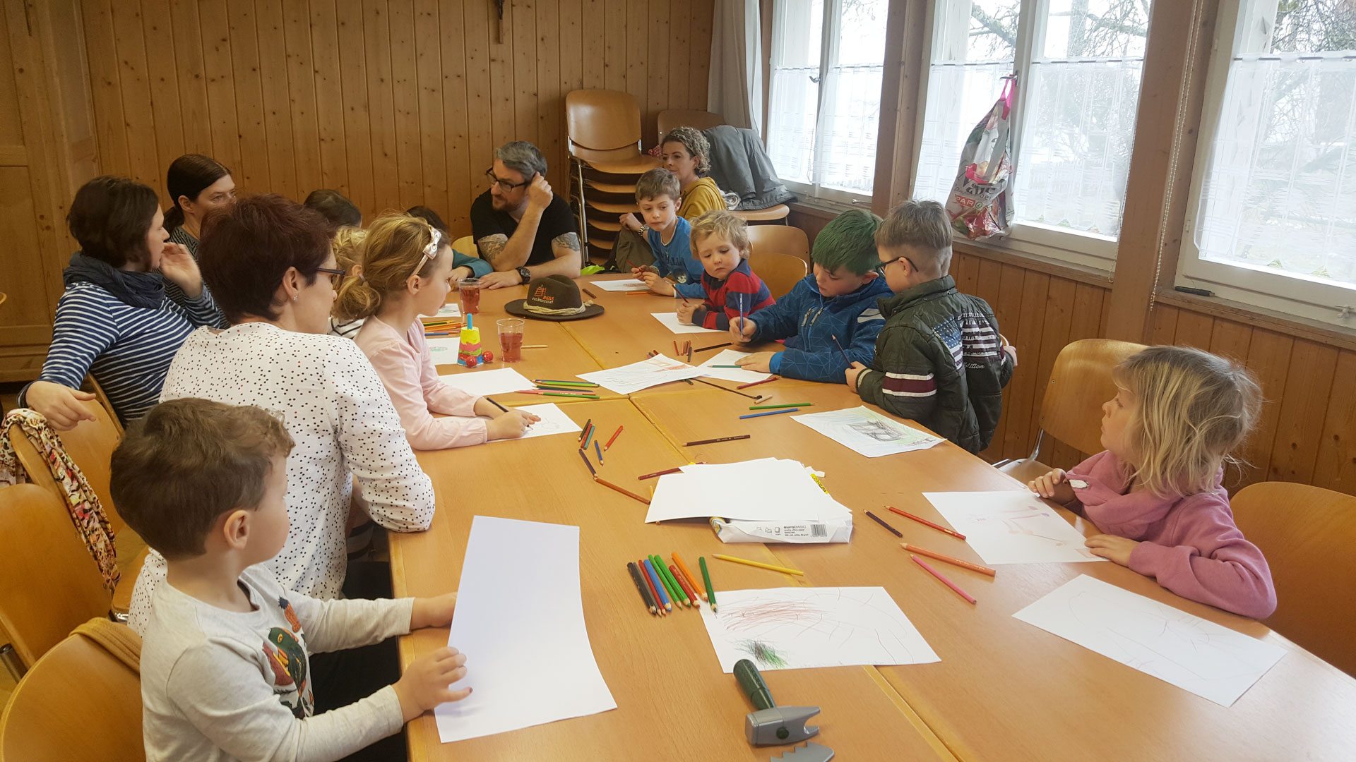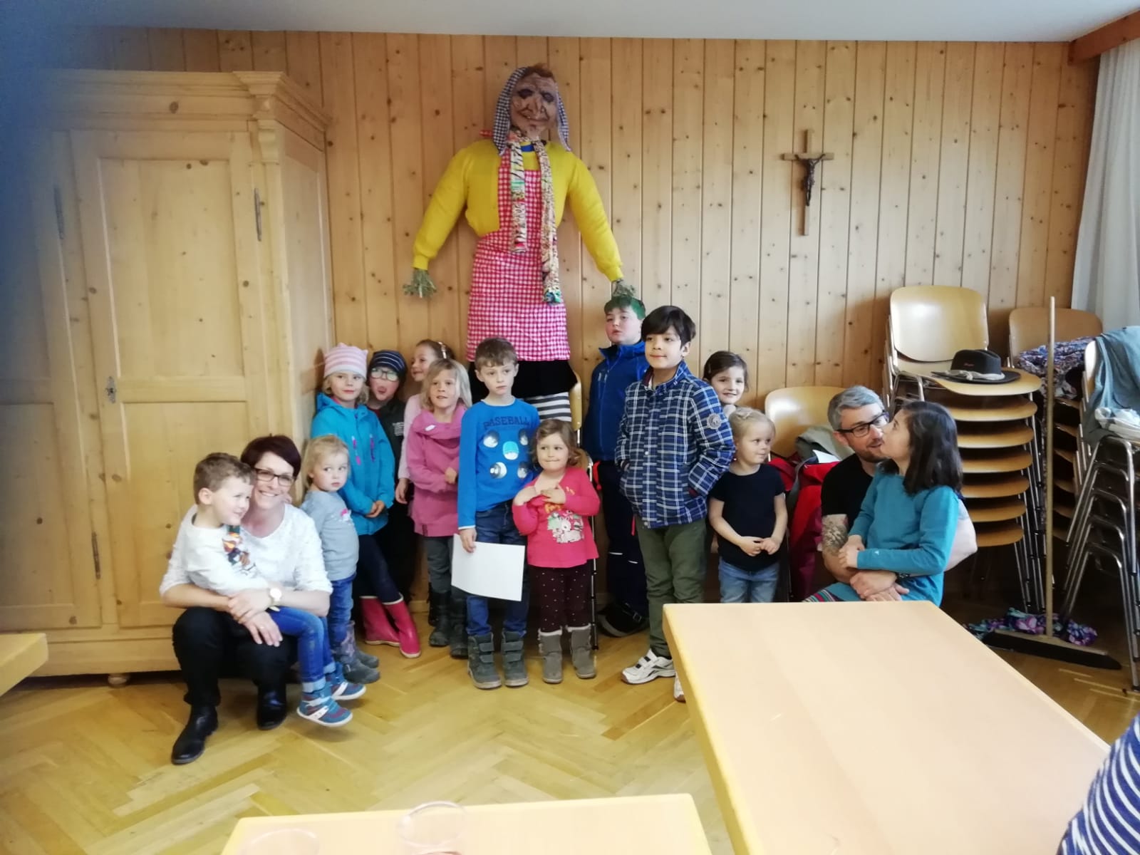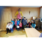 13 Kinder aus Röns beteiligten sich am Malen, Basteln der Funkenhexe, Wahl Funkengotta / Funkengötte, Taufe der Funkenhexe
