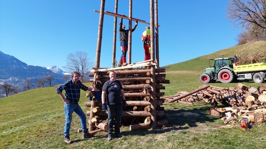 Nach einer feierlichen Eröffnungsrede von Obmann Klaus Tschabrun war es endlich so weit: Der große Funken wurden von Funkenmeister Gerold Stark und von Wolfgang Marte bzw. Stefan Gohm entzündet. Der Funkenzauber in Röns nahm seinen Lauf!