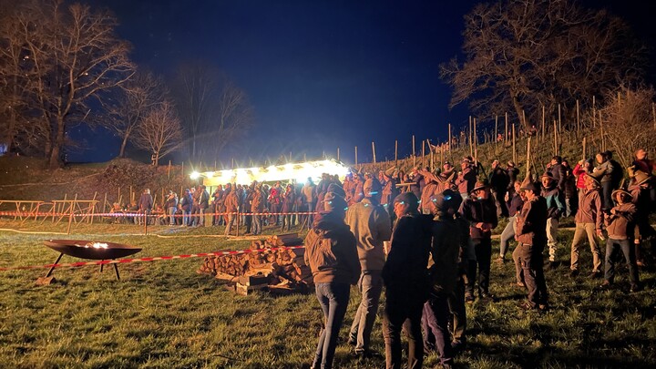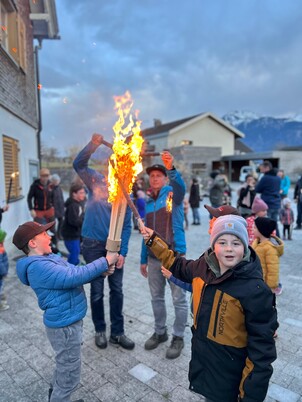 Dort angekommen, wurde der kleine Funken vom Funkenmeister Gerold Stark gemeinsam mit den Kindern feierlich entzündet. Unter den wachsamen Augen ihrer Eltern erlebten sie einen besonderen Moment voller Tradition und Vorfreude.