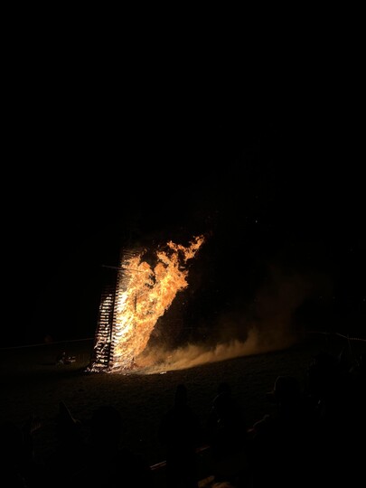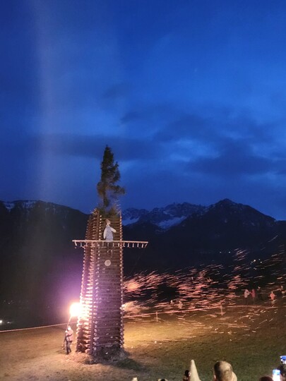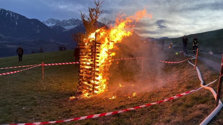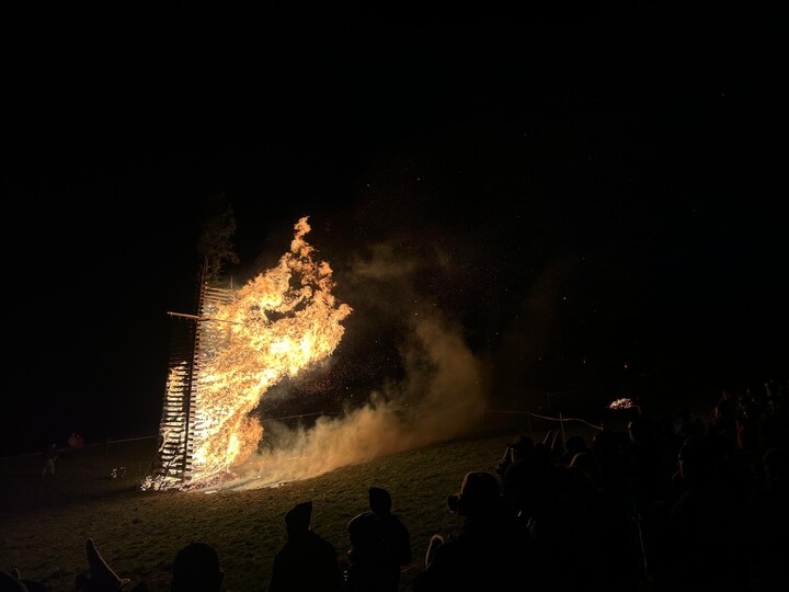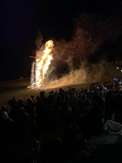 Die Flammen loderten prächtig, faszinierten die Zuschauer und ließen die Kinderaugen strahlen. Die feierliche Atmosphäre wurde durch ein "schnuggeliges" aber feines Feuerwerk beim großen Funken untermalt. Ein besonderes Dankeschön gilt Pyrotechniker Matthias Hoch, der mit seinem Feuerwerk für staunende Gesichter sorgte.
