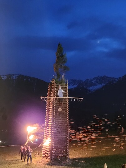 Aufgrund vereinzelter Windböen musste das Entzünden des großen Funkens in Absprache mit der Feuerwehr und dem Obmann kurzzeitig verschoben werden. Die Feuerwehr Röns hielt die Funkenflüge jedoch gekonnt unter Kontrolle und sorgte für die Sicherheit aller Anwesenden – ein herzliches Dankeschön an die engagierten Einsatzkräfte!