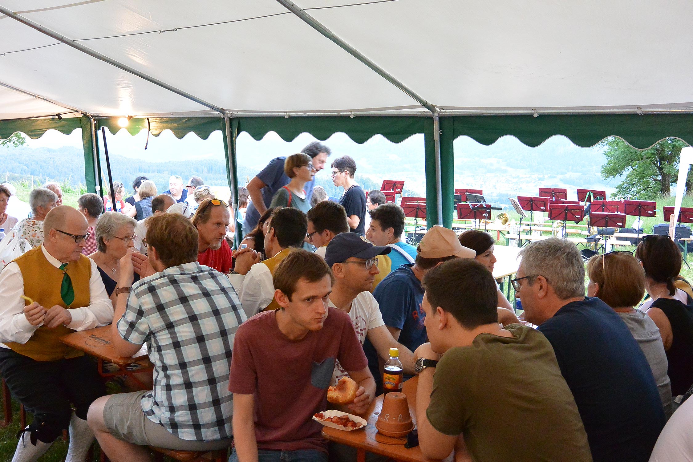 Bei strahlend schönem Wetter konnte unser neuer Obmann Daniel Sochin wieder zahlreiche Gäste begrüßen. Die Besucher wurden mit gutem Essen und erlesenen Weinen bewirtet. Nach Einbruch der Dunkelheit wurde das Sonnwendfeuer von Altbürgermeister Anton Gohm gemeinsam mit unserem neuen Bürgermeister Michael Ammann entzündet.